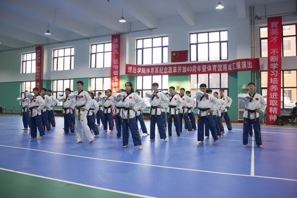 12月19日,为纪念改革开放40周年暨体育馆落成,体育系在新体育馆一楼举办汇报演出。常务副院长王国军、党委书记徐焕文、副院长张伟、张力宏、张勇出席,各系、部(处、室)负责人及体育系师生500余人参加。
