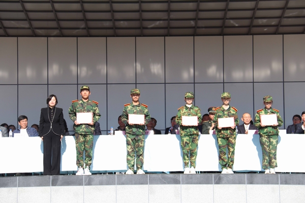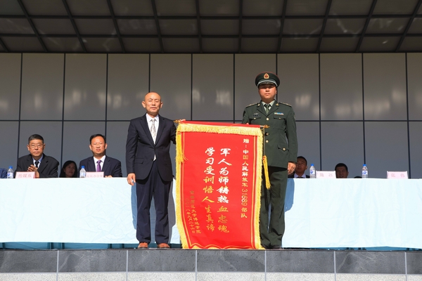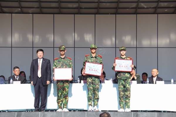 军训评选出来了8支“先进连队”,233名“军训标兵”,59个“内务先进寝室”。副院长张伟向部队赠送锦旗。